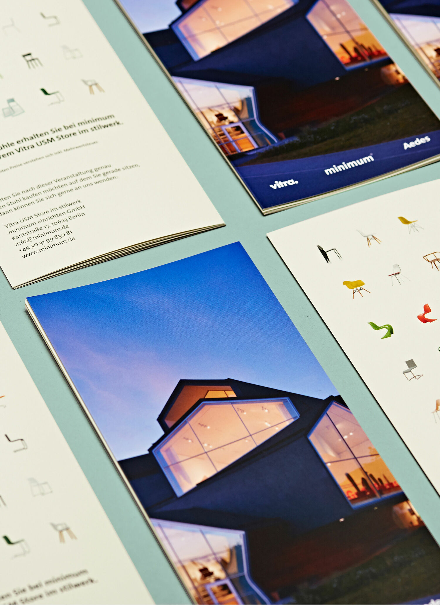 Bulthaup is known for having clean lines, perfect techniques and the best materials. The most important room of every apartment should represent the customer’s personality. The balance between humankind and minimalism is shown in minimum’s brochures: a clean layout and Otl Aicher typography matched with a dynamic image arrangement and sketched illustrations.